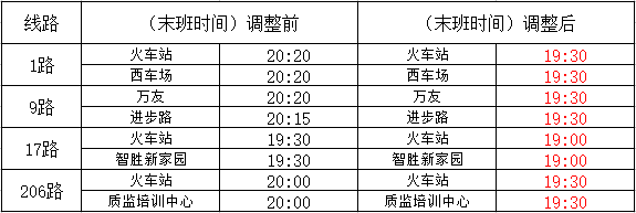 11月15日起涉及4條公交線路末班時間調(diào)整通知